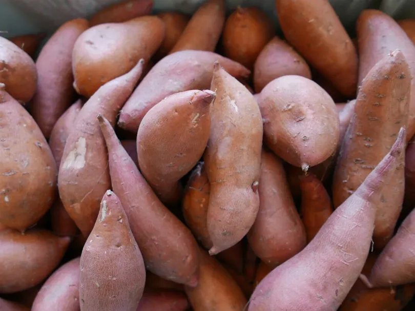 Patates douces bio cultivées à chair orangée, sucrée douce et fondante à la cuisson — parfaite au four, en purée ou en frites.