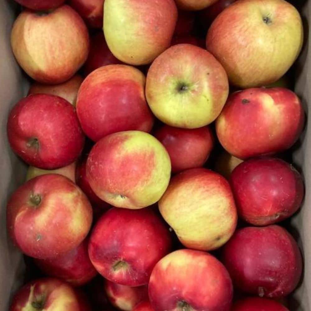 La pomme Idared est grosse, jaune clair, teintée de rouge lumineux au soleil. Sa chair fine, assez croquante, est juteuse, douce, légèrement acidulée et sucrée. Elle s'apprécie crue comme cuite. En direct des Vergers Grandieu.